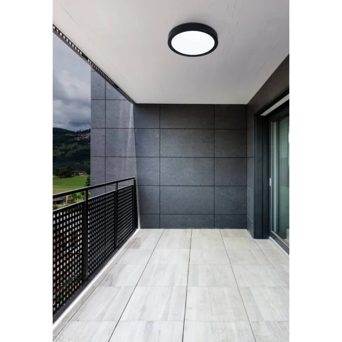 Bulb Holder Type:LED Maximum Wattage: 20.5W The bulb is included in the product. Product Height: 3 cm Product Diameter: 28.5 cm Net Weight: 1.06 Kg Main Material: Steel Main Color: Black Glass/Hat Material: Plastic Glass/Hat Color: White Kelvin: 3000K Lumens: 2400 IP Condition: IP44 Switch Type: Wall Switch Product Voltage: 220-240V,50/60Hz