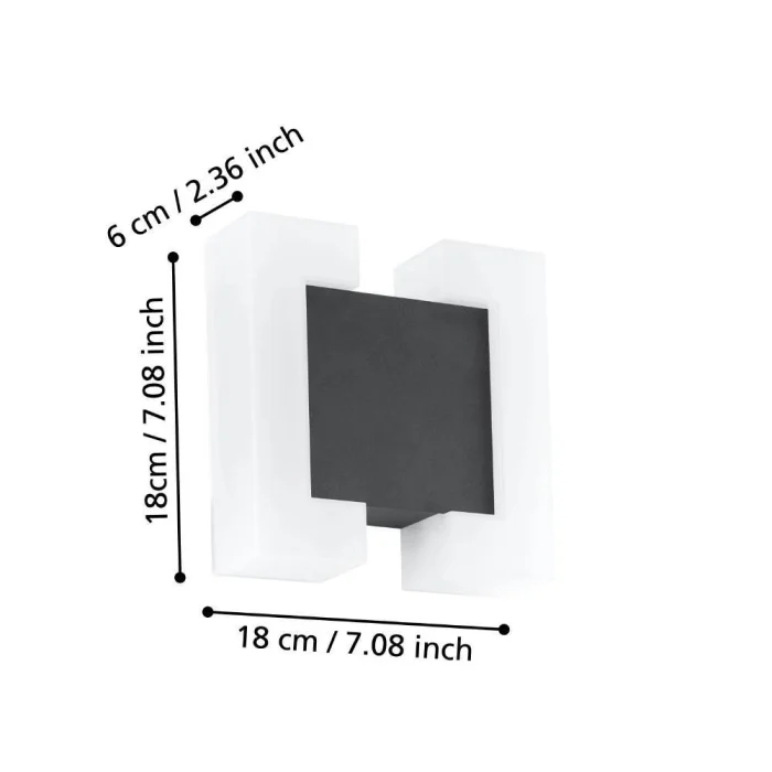 Bulb holder type:LED Maximum wattage: 2X4.8W The bulb is included in the product. Product Height: 18 cm Product Length: 18 cm Provision Protrusion: 5.5 cm Net Weight: 0.79 Kg Main Material: Galvanized Steel Main Color: Anthracite Glass/Hat Material: Plastic Glass/Hat Color: White Kelvin: 3000K Lumens: 1100 IP Status: IP44 Switch Type: Wall Switch Product Voltage: 220-240V,50/60Hz