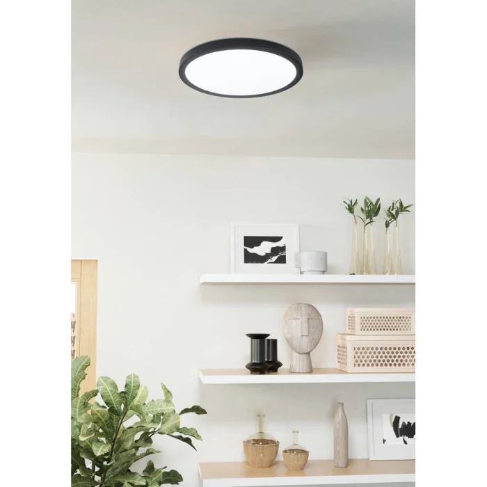 Bulb holder type:LED Maximum wattage: 19.5W The bulb is included in the product. Product Height: 3 cm Product Diameter: 28.5 cm Net Weight: 0.95 Kg Main Material: Aluminum Main Color: Black Glass/Hat Material: Plastic Glass/Hat Color: White Kelvin: 2700-6500K Lumens: 2700 IP Condition: IP44 Switch Type: Wall Switch Product Voltage: 220-240V,50/60Hz