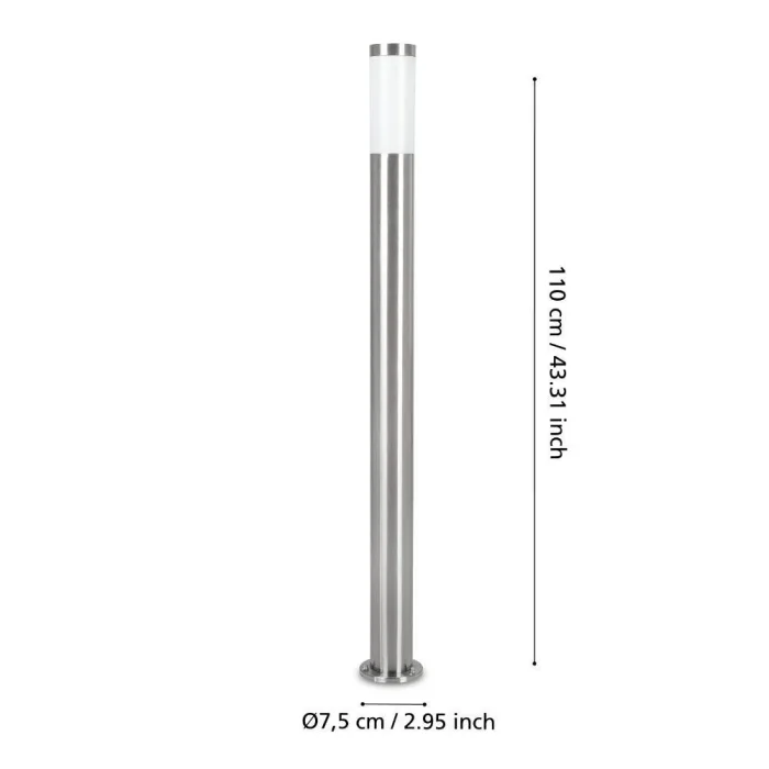 Bulb Holder Type:E27-LED-A60 Maximum Wattage: 1X12W Product Height: 110 cm Product Diameter: 7.5 cm Net Weight: 1.71 Kg Main Material: Stainless Steel Main Color: Stainless Steel Glass/Hat Material: Plastic Glass/Hat Color: White IP Status: IP65 Product Voltage: 220-240V,50/60Hz