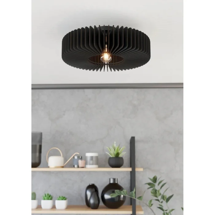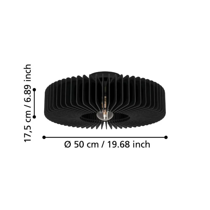Bulb Holder Type: E27 Maximum Wattage: 1X40W Product Height: 17.5 cm Product Diameter: 50 cm Net Weight: 3.3 Kg Main Material: Steel Main Color: Black Glass/Hat Material: Wooden Glass/Hat Color: Black IP Status: IP20 Switch Type: Wall Switch Product Voltage: 220-240V,50/60Hz