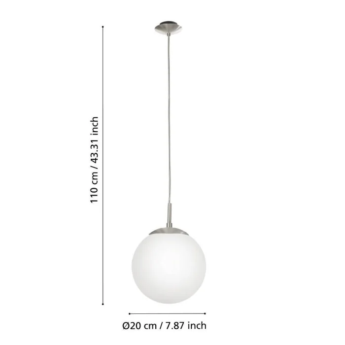 Bulb Holder Type: E27 Maximum Wattage: 1X60W Product Height: 110 cm Product Diameter: 20 cm Net Weight: 1.34 Kg Main Material: Steel Main Color: Nickel Matte Glass/Hat Material: Opal Matte Glass Glass/Hat Color: White IP Status: IP20 Switch Type: Wall Switch Product Voltage: 220-240V,50/60Hz