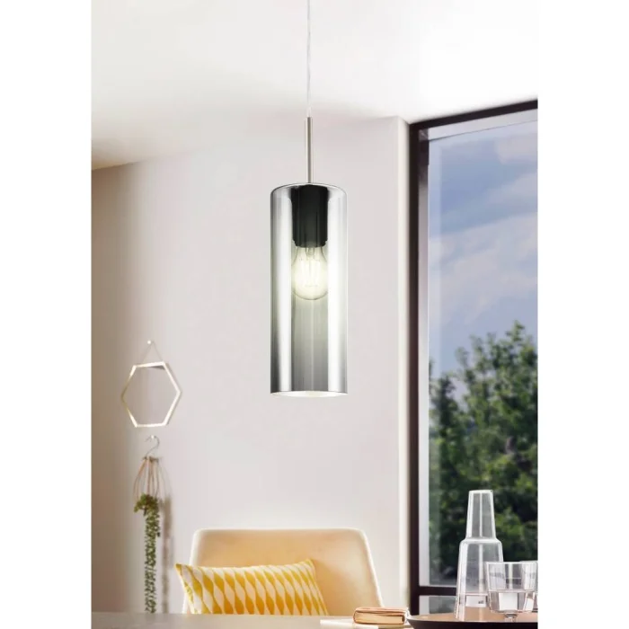 Bulb Holder Type: E27 Maximum Wattage: 1X15W Product Height: 110 cm Product Diameter: 10 cm Net Weight: 0.95 Kg Main Material: Steel Main Color: Nickel Matte Glass/Hat Material: Vaporized Glass Glass/Hat Color: Black-Transparent IP Status: IP20 Switch Type: Wall Switch Product Voltage: 220-240V,50/60Hz