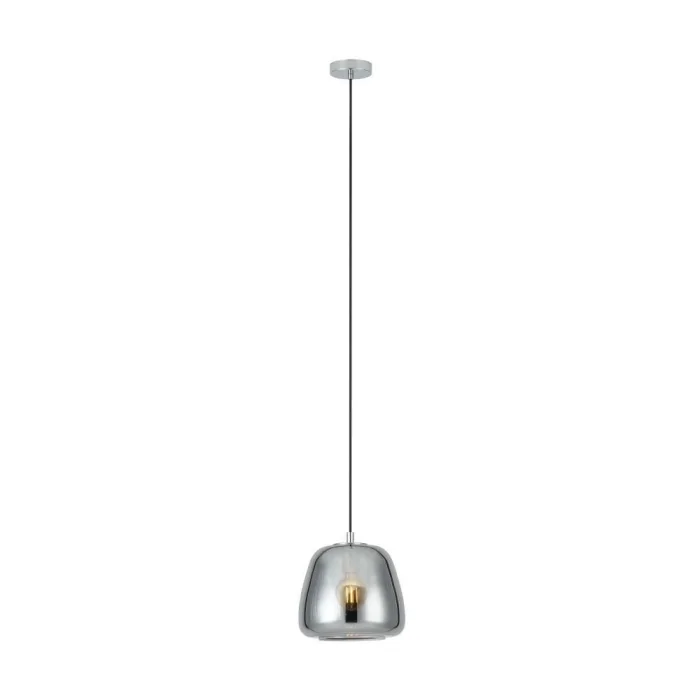 Bulb Holder Type: E27 Maximum Wattage: 1X40W Product Height: 150 cm Product Diameter: 26 cm Net Weight: 1.85 Kg Main Material: Steel Main Color: Chrome Glass/Hat Material: Vaporized Glass Glass/Hat Color: Black-Transparent IP Status: IP20 Switch Type: Wall Switch Product Voltage: 220-240V,50/60Hz