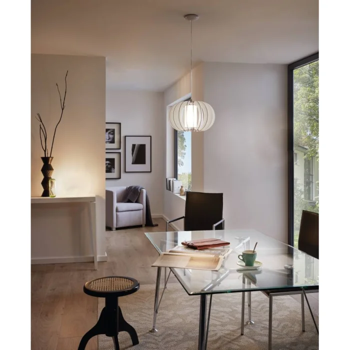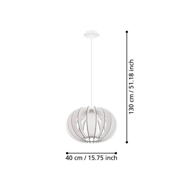 Bulb Holder Type: E27 Maximum Wattage: 1X60W Product Height: 130 cm Product Diameter: 40 cm Net Weight: 1.63 Kg Main Material: Steel Main Color: White Glass/Hat Material: Wood, Glass Glass/Hat Color: White IP Status: IP20 Switch Type: Wall Switch Product Voltage: 220-240V,50/60Hz