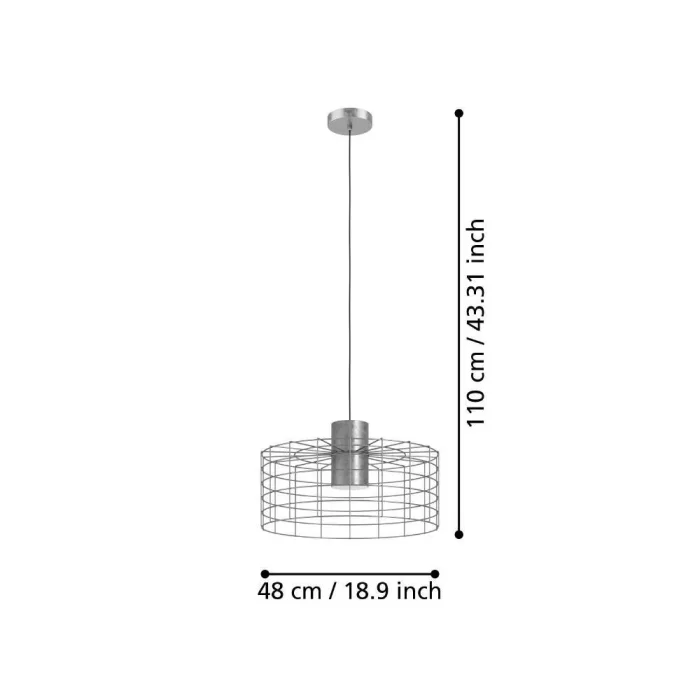Bulb Holder Type: E27 Maximum Wattage: 1X40W Product Height: 110 cm Product Diameter: 48 cm Net Weight: 2.84 Kg Main Material: Steel Main Color: Galvanized, White IP Status: IP20 Switch Type: Wall Switch Product Voltage: 220-240V,50/60Hz