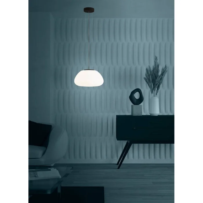 Bulb Holder Type: E27 Maximum Wattage: 1X40W Product Height: 150 cm Product Diameter: 41.5 cm Net Weight: 3.35 Kg Main Material: Steel Main Color: Black Glass/Hat Material: Opal Matte Glass Glass/Hat Color: White IP Status: IP20 Switch Type: Wall Switch Product Voltage: 220-240V,50/60Hz