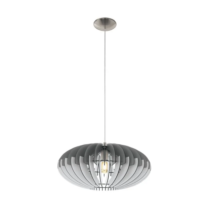 Bulb Holder Type: E27 Maximum Wattage: 1X60W Product Height: 150 cm Product Diameter: 50 cm Net Weight: 2.45 Kg Main Material: Steel Main Color: Nickel Matte Glass/Hat Material: Wooden Glass/Hat Color: Grey, White IP Status: IP20 Switch Type: Wall Switch Product Voltage: 220-240V,50/60Hz