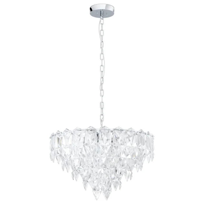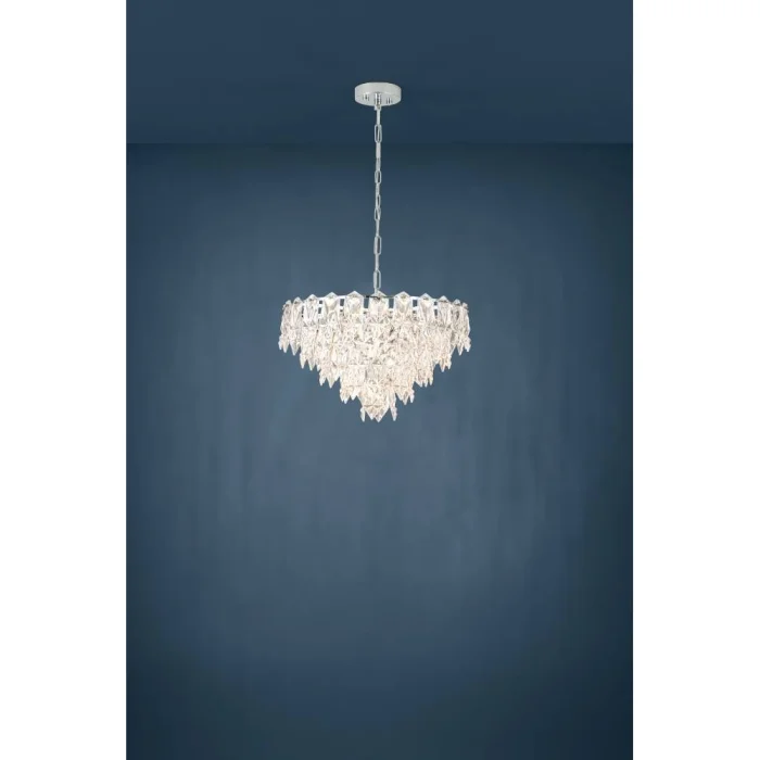 Bulb Holder Type: E14 Maximum Wattage: 10X40W Product Height: 110 cm Product Diameter: 60 cm Net Weight: 18.48 Kg Main Material: Steel Main Color: Chrome Glass/Hat Material: Glass Glass/Hat Color: Transparent IP Status: IP20 Switch Type: Wall Switch Product Voltage: 220-240V,50/60Hz