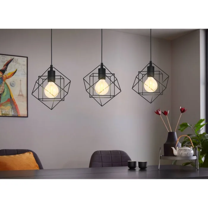 Bulb Holder Type: E27 Maximum Wattage: 3X60W Product Height: 110 cm Product Length: 90.5 cm Product Width 24 cm Net Weight: 2.47 Kg Main Material: Steel Main Color: Black IP Condition: IP20 Switch Type: Wall Switch Product Voltage: 220-240V,50/60Hz