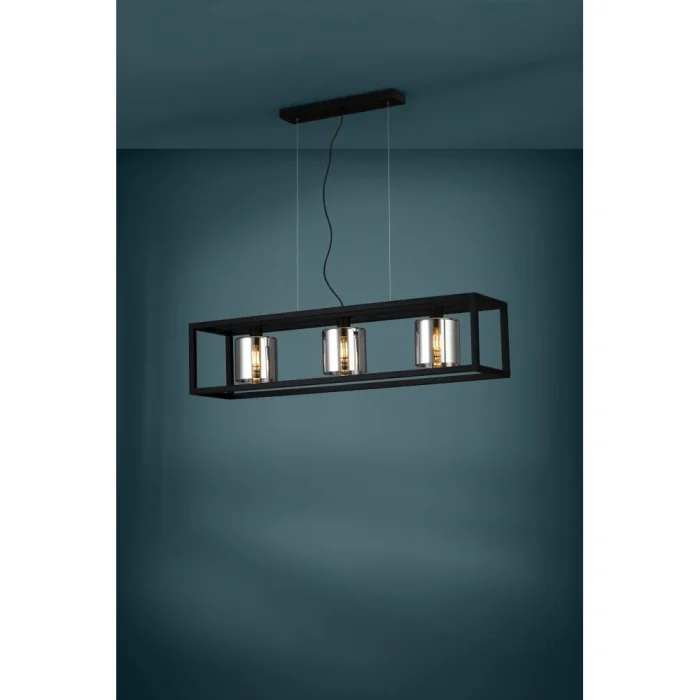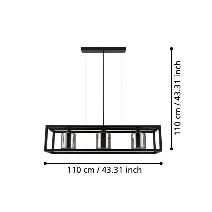 Bulb Holder Type: E27 Maximum Wattage: 3X60W Product Height: 110 cm Product Length: 110 cm Product Width 25 cm Net Weight: 8.57 Kg Main Material: Steel Main Color: Black Glass/Hat Material: Vaporized Glass Glass/Hat Color: Black-Transparent IP Status: IP20 Switch Type: Wall Switch Product Voltage: 220-240V,50/60Hz
