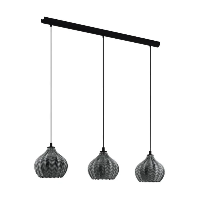Bulb Holder Type: E27 Maximum Wattage: 3X40W Product Height: 110 cm Product Length: 105 cm Product Width 23 cm Net Weight: 2.67 Kg Main Material: Steel Main Color: Black Glass/Hat Material: Vaporized Glass Glass/Hat Color: Black-Transparent IP Status: IP20 Switch Type: Wall Switch Product Voltage: 220-240V,50/60Hz