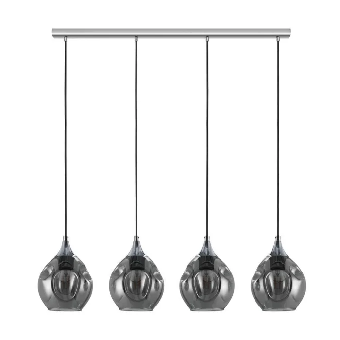 Bulb Holder Type: E27 Maximum Wattage: 4X40W Product Height: 110 cm Product Length: 109 cm Product Width 16 cm Net Weight: 3.82 Kg Main Material: Steel Main Color: Chrome Glass/Hat Material: Vaporized Glass Glass/Hat Color: Black-Transparent IP Status: IP20 Switch Type: Wall Switch Product Voltage: 220-240V,50/60Hz