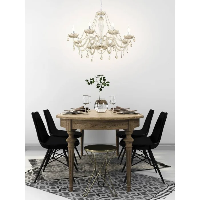 Bulb Holder Type: E14 Maximum Wattage: 8X40W Product Height: 130 cm Product Diameter: 82 cm Net Weight: 10.14 Kg Main Material: Steel Main Color: Chrome Glass/Hat Material: Glass Glass/Hat Color: Cognac IP Status: IP20 Switch Type: Wall Switch Product Voltage: 220-240V,50/60Hz