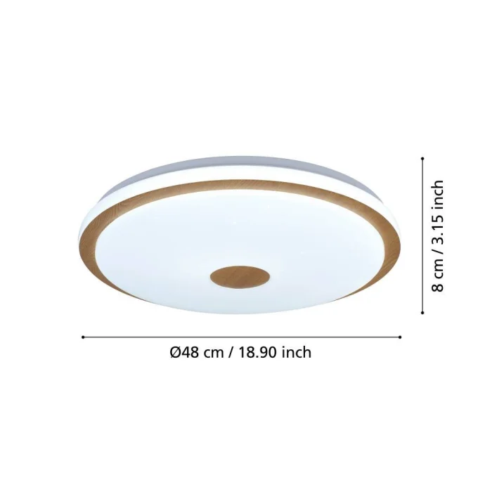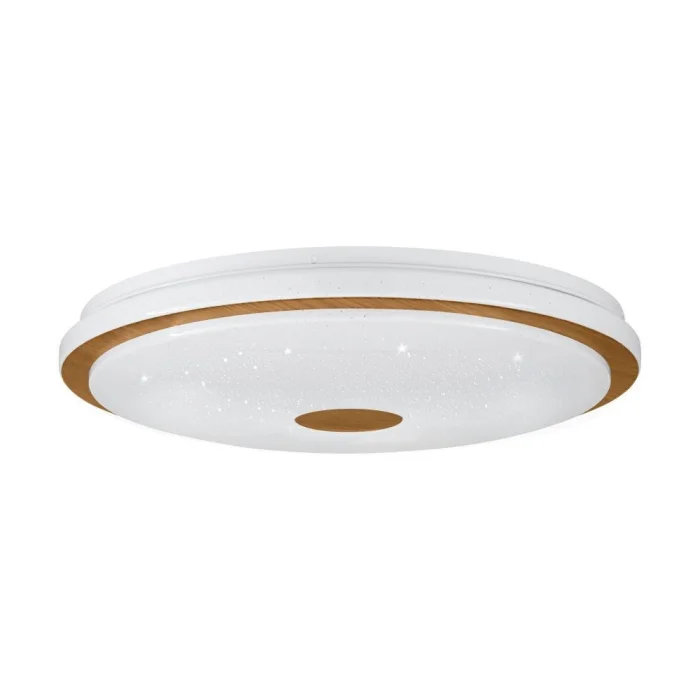 Bulb holder type: LED Maximum wattage: 35W bulb included. Product Height: 8 cm Product Diameter: 48 cm Net Weight: 1.64 Kg Main Material: Steel, Wood Main Color: White, Brown Glass/Hat Material: Plastic Glass/Hat Color with Crystal Effect: White Kelvin: 3000K, 4000K, 5000K Lumens: 4000 IP Status: IP20 Functions: Including Remote Control, Control by Remote Control, Cct Switch Type: Wall Switch Product Voltage: 220-240V,50/60Hz