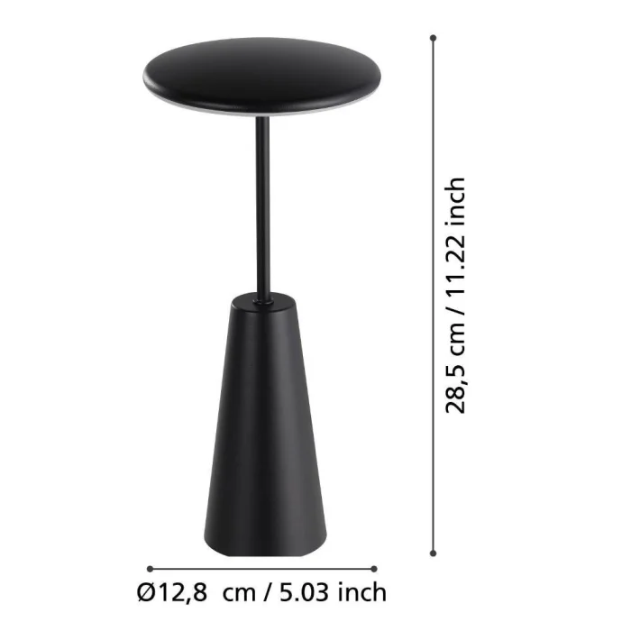 Bulb Holder Type: LED Maximum Wattage: 2.8W Bulb Included. Product Height: 28 cm Product Diameter: 13 cm Net Weight: 0.8 Kg Main Material: Steel Main Color: Black Glass/Hat Material: Plastic Glass/Hat Color: White Kelvin: 2400K, 3000K, 4000K Lumens: 270 IP Status: IP54 Functions: Usb Input Switch Type: Touch