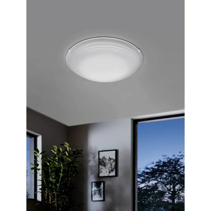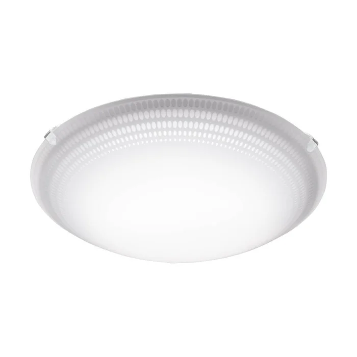 Bulb holder type: LED Maximum wattage: 3X3.6W bulb included. Product Height: 8 cm Product Diameter: 25 cm Net Weight: 0.73 Kg Main Material: Steel Main Color: White Glass/Hat Material: Glass Glass/Hat Color: White, Transparent Kelvin: 3000K Lumens: 1110 IP Condition: IP20 Switch Type: Wall Switch Product Voltage: 220-240V,50/60Hz