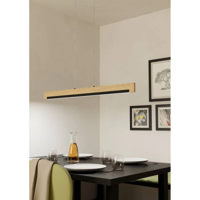 Bulb Holder Type: LED Maximum Wattage: 25.5W Bulb Included. Product Height: 110 cm Product Length: 110 cm Product Width 6 cm Net Weight: 2.2 Kg Main Material: Steel, Wood Main Color: Black, Brown Glass/Hat Material: Plastic Glass/Hat Color: White Kelvin: 3000K Lumens: 3100 IP Status: IP20 Switch Type: Wall Switch Product Voltage: 220-240V,50/60Hz