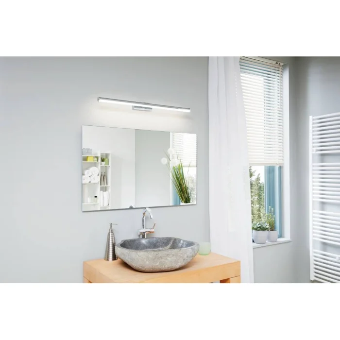 Bulb Holder Type: LED Maximum Wattage: 14W Bulb Included. Product Height: 5 cm Product Length: 78 cm Provision Protrusion: 12.5 cm Net Weight: 0.61 Kg Main Material: Plastic Main Color: Chrome Glass/Hat Material: Plastic Glass/Hat Color: White Kelvin: 4000K Lumens: 1700 IP Condition: IP44 Switch Type: Wall Switch Product Voltage: 220-240V,50/60Hz