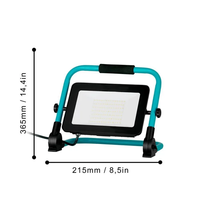 Bulb Holder Type: LED Maximum Wattage: 100W Bulb Included. Product Height: 36.5 cm Product Length: 29.5 cm Product Width 21.5 cm Net Weight: 2.03 Kg Main Material: Aluminum, Plastic Main Color: Black, Turquoise Glass/Hat Material: Plastic Glass/Hat Color: White Kelvin: 4000K Lumens: 11200 IP Status: IP65 Switch Type: AL Cable + Plug Product Voltage: 220-240V,50/60Hz