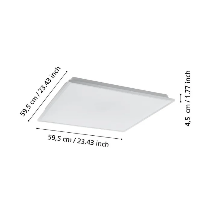 Bulb holder type: LED Maximum wattage: 6X5.3W bulb included. Product Height: 4 cm Product Length: 59.5 cm Product Width 59.5 cm Net Weight: 2.84 Kg Main Material: Aluminum Main Color: White Glass/Hat Material: Plastic Glass/Hat Color: White Kelvin: 2700-6500K Lumens: 4500 IP Condition: IP20 Switch Type: Wall Switch Product Voltage: 220-240V,50/60Hz