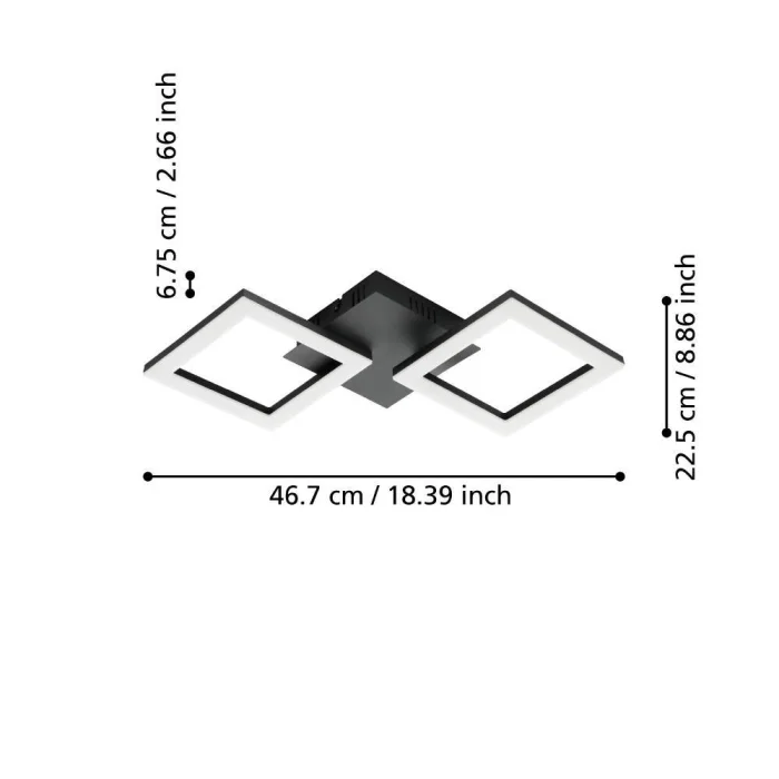 Bulb Holder Type: LED Maximum Wattage: 15.5W Bulb Included. Product Height: 6 cm Product Length: 47 cm Product Width 22.5 cm Net Weight: 0.73 Kg Main Material: Steel Main Color: Black Glass/Hat Material: Plastic Glass/Hat Color: White Kelvin: 3000-6500K Lumens: 1800 IP Status: IP20 Switch Type: Wall Switch Product Voltage: 220-240V,50/60Hz