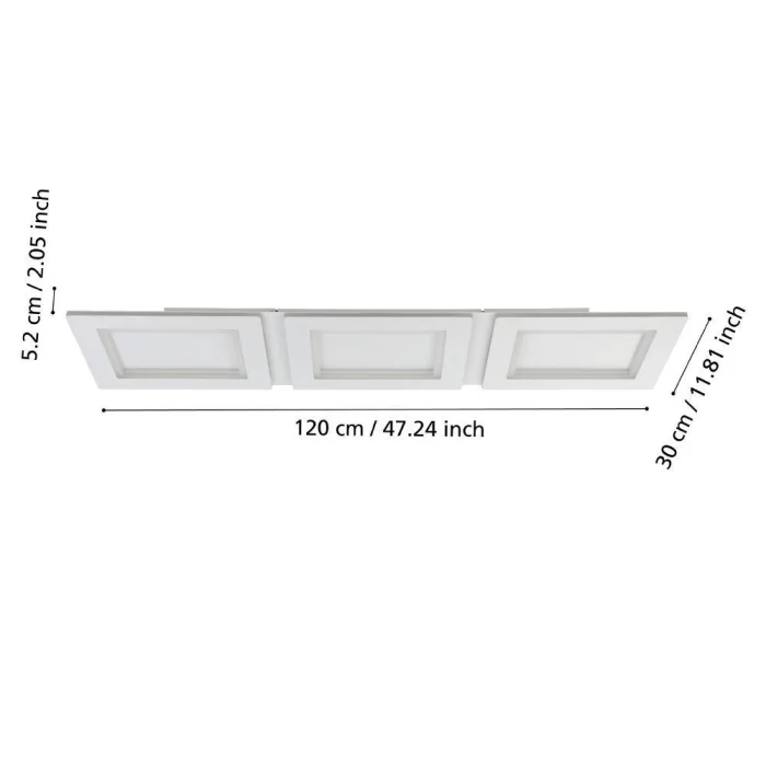 Bulb Holder Type: LED Maximum Wattage: 42.5W Bulb Included. Product Height: 5 cm Product Length: 120 cm Product Width 30 cm Net Weight: 6.43 Kg Main Material: Steel Main Color: White Glass/Hat Material: Plastic Glass/Hat Color: White Kelvin: 2700-6500K Lumens: 6000 IP Status: IP20 Switch Type: Wall Switch Product Voltage: 220-240V,50/60Hz