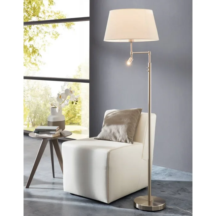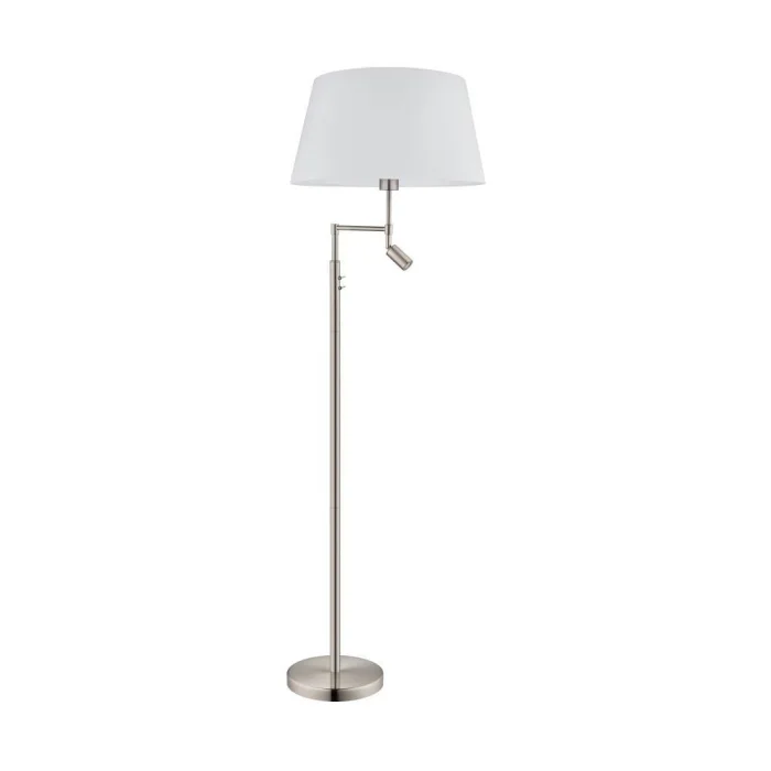 Bulb Holder Type: E27/LED Maximum Wattage: 1X60W/1X2.3W Product Height: 153 cm Product Diameter: 50 cm Net Weight: 6.91 Kg Main Material: Steel Main Color: Nickel Matte Glass/Hat Material: Textile Fabric Glass/Hat Color: White Kelvin: 3000K Lumens: 260 IP Condition: IP20 Switch Type: Body Switch Product Voltage: 220-240V,50/60Hz