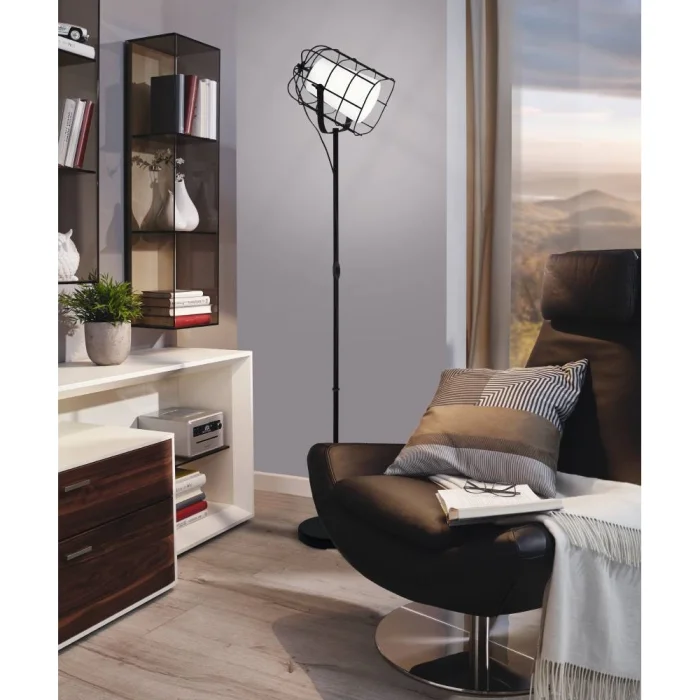 Bulb Holder Type: E27 Maximum Wattage: 1X28W Product Height: 148.5 cm Product Length: 26 cm Product Width 19 cm Net Weight: 4.75 Kg Main Material: Steel Main Color: Black Glass/Hat Material: Textile Fabric Glass/Hat Color: White IP Status: IP20 Switch Type: Cable Switched Product Voltage: 220-240V,50/60Hz