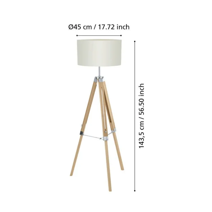 Bulb Holder Type: E27 Maximum Wattage: 1X60W Product Height: 143 cm Product Diameter: 45 cm Net Weight: 6.09 Kg Main Material: Wood, Steel Main Color: Natural Glass/Hat Material: Textile Fabric Glass/Hat Color: Beige IP Condition: IP20 Switch Type: Cable Switched Product Voltage: 220-240V,50/60Hz