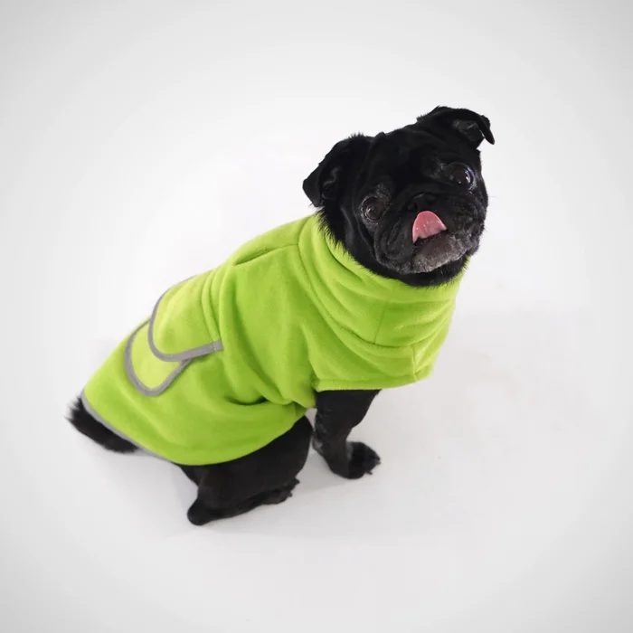 Made from extra-soft, warm fleece fabric. There are reflector details for night walks. It has a leash hole and a pocket. 100% Polyester Be sure to review the size chart before choosing a size.