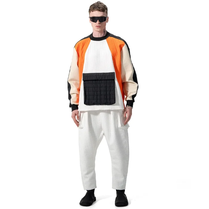 FOUR-COLOR COMBINED SWEATSHIRT WITH CARGO POCKET AT THE FRONT KNITTED RIBBED SWEATSHIRT