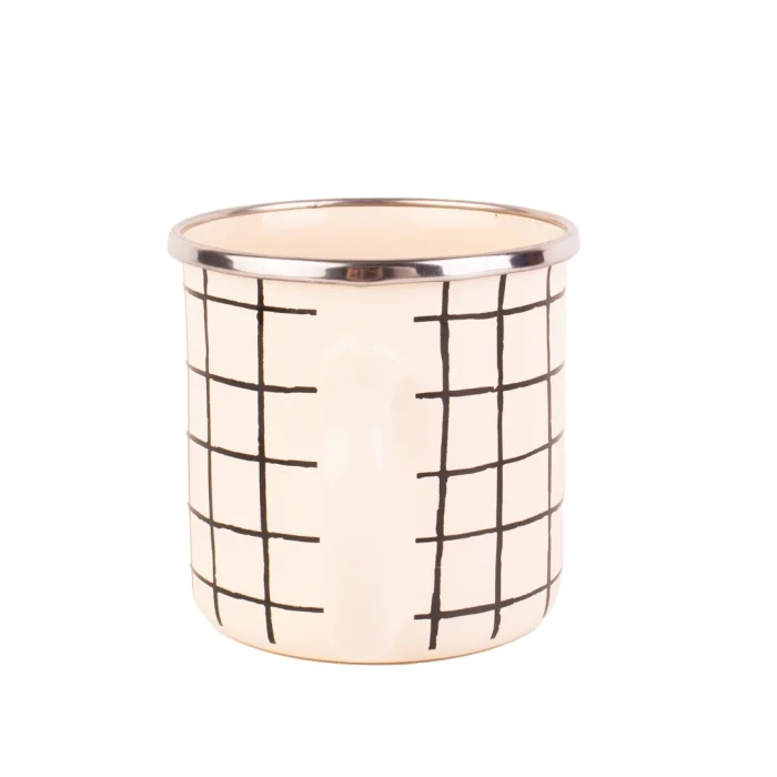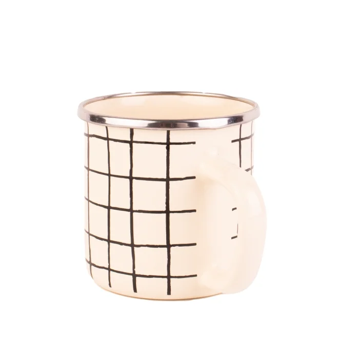 Product: Black Cupid Checkered Enamel Mug