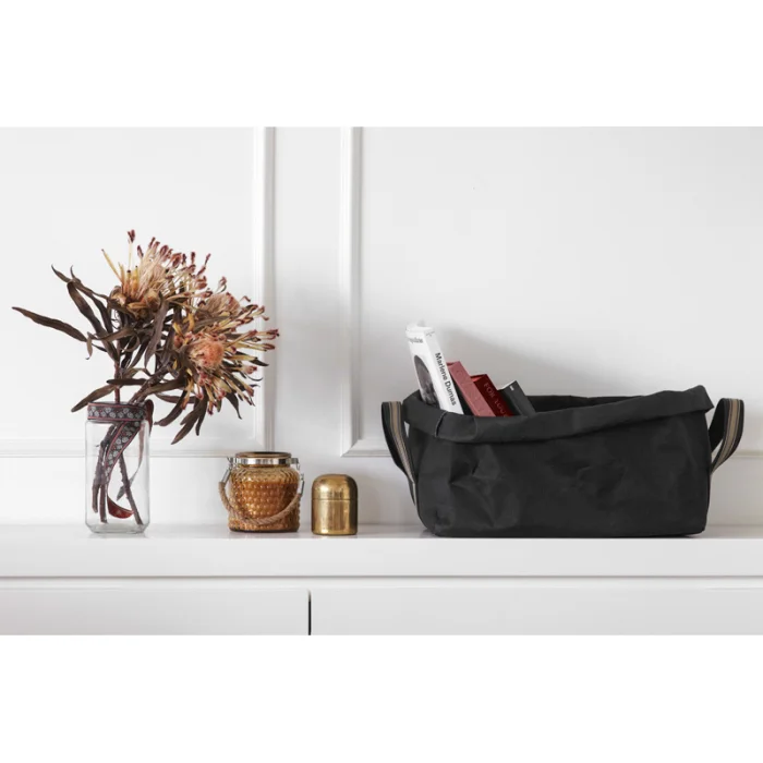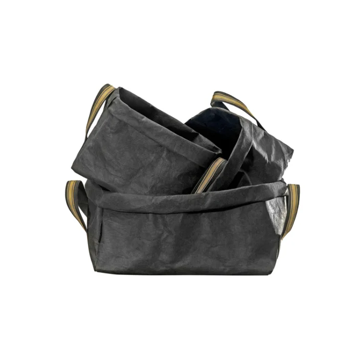 Boxes can be folded and put aside. The colorful ribbons made the boxes an exclusive design. Recycable, washable papers. Water-resistant and tear-resistant. Small: g.25 cm, Medium: g.29 cm, Large: g.37 cm.