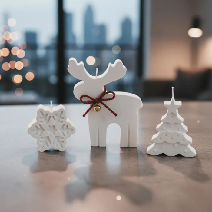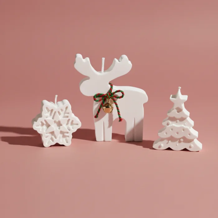 3-piece Soy Candle Christmas 3d Figure Set - Reindeer, Pine Tree, Snowflake