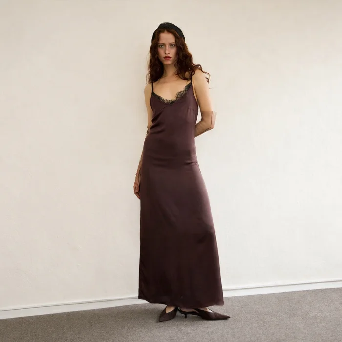 Product: Narcissus Brown Satin Dress