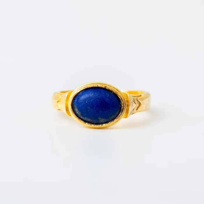 Each piece is carefully crafted from refined bronze and finished with 24k gold plating for a radiant, lustrous look. Featuring onyx stone.Product: Ishtar Ring