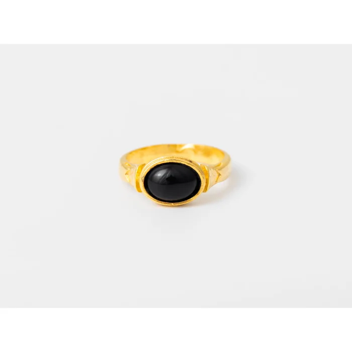 Each piece is carefully crafted from refined bronze and finished with 24k gold plating for a radiant, lustrous look. Featuring onyx stone.