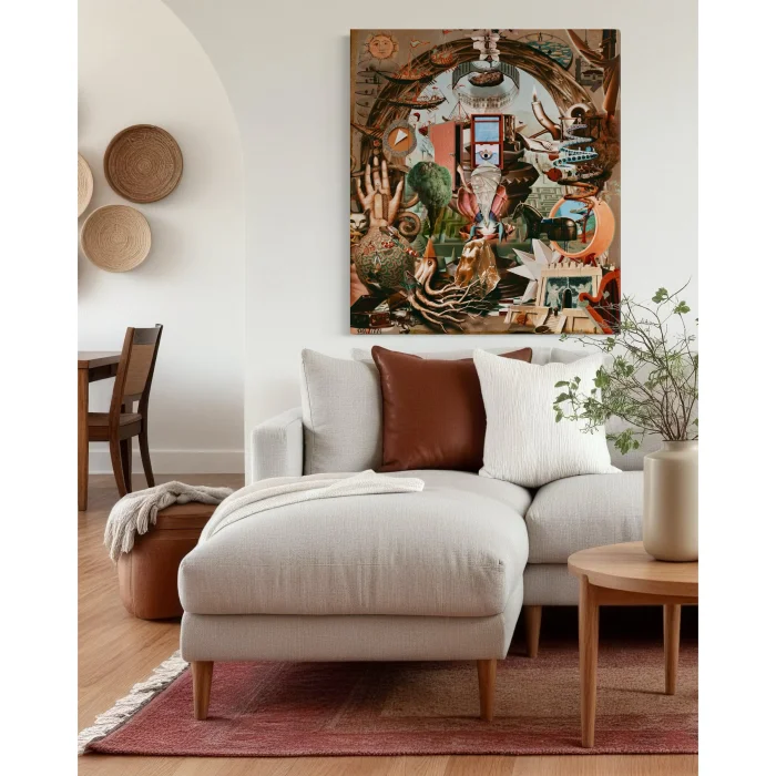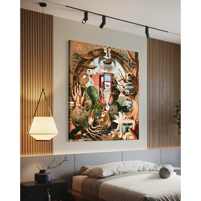 Name: Method Dimensions: 100x113 cm • 132x150 cm, 150x170 cm Story: Method is a work of EudaimoniArt that questions the process of performing a job, obtaining information and putting this knowledge into practice. The method is considered as a tool of man's effort to make sense of life and transform his relationship with his environment. However, this work emphasizes that the method is not only a tool, but also a reflection of the conscious awareness of the human being. In the center of the painting is a structure that symbolizes the process of human search for method. This structure appears as a visual representation of a system that is shaped by trial and error, the process of consciousness that starts with each question "How can it be done?". At the point where man overcomes resistances with his natural abilities, he reaches method awareness. The method describes this awareness process in an aesthetic language. The cyclical and connected forms in the work represent the relationship that a person establishes with an object, phenomenon or process. The method is the way in which these relationships are arranged. This process, which starts with thought, enables the human being to become a subject and ultimately reach the consciousness of "I". However, the work emphasizes that man does not stop there, but continues to reflect on his orientations and relationships. This process of reflection reflects the level at which method is questioned and philosophy emerges. Method reminds us that the method emerges from life, so questioning the method means questioning life itself. The method is not only a means of generating knowledge or achieving a goal, but also a guide that deepens the meaning of life. This work invites the viewer to discover their own methods, to build their own path in the multi-layered structure of life. Emphasizing that the search for method is not only a solution, but also a process of questioning and awareness, Method encourages the viewer to constantly think and create as a part of life. • * Name: Method Dimensions: 100x113 cm, 132x150 cm, 150x170 cm Story: Method is a EudaimoniArt creation that explores the process of achieving tasks, acquiring knowledge, and bringing this knowledge into practice. It highlights the role of method not merely as a tool but as a reflection of human conscious awareness and engagement with life. At the heart of the artwork lies a structure symbolizing the human journey of seeking methods. Each "How is it done?" question sparks a process of awareness shaped through trial and error. It is through this process that individuals overcome resistance and develop a conscious understanding of their actions. Method visualizes this path of discovery and transformation. The circular and interconnected forms within the piece represent the relationships humans establish with objects, phenomena, or processes. Method becomes the means of organizing and navigating these connections. The journey begins with thought, leading to self-awareness and the formation of "I." Yet, the artwork reminds us that this is not the end. Humans continually reflect on their actions, thoughts, and relationships, stepping into a realm of higher awareness. This reflective process signifies the level where the questioning of methods and the emergence of philosophy occur. Method emphasizes that methods arise from life itself, making the act of questioning them akin to questioning life as a whole. It portrays method not only as a pathway to achieve goals or produce knowledge but also as a guide that deepens the meaning of existence. This piece invites the viewer to discover their own methods and build their paths within the multilayered complexity of life. By underscoring that the search for methods is not just a solution but a process of inquiry and awareness, Method inspires its audience to continuously think, create, and engage as part of life's ever-evolving journey.