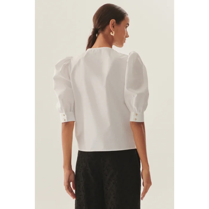 Product: Balloon Sleeve V-neck Regular Fit Poplin White Blouse