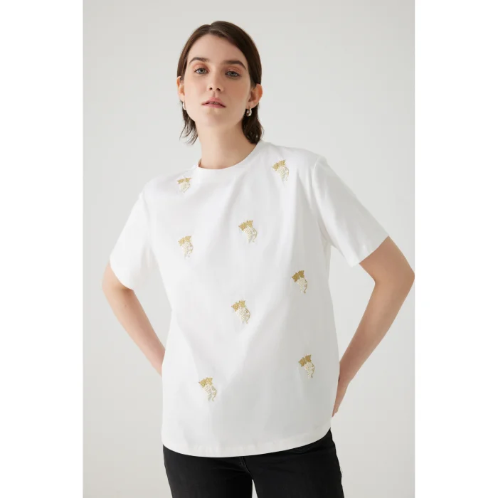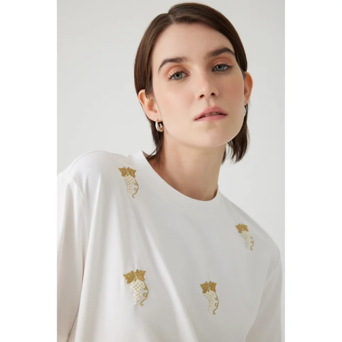 Product: Beaded Embroidered Crew Neck Lycra Regular T-shirt