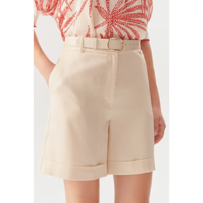 These beige shorts, which stand out with their belt detail and double leg section, are a candidate to be one of the most popular pieces of the summer wardrobe. While it creates a modern silhouette with its elegant belt, it offers comfort in hot weather thanks to its light fabric.