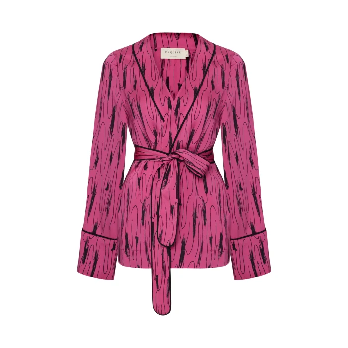 Combining elegance and functionality, this fuchsia black summer season jacket will be a wardrobe staple. This jacket, which offers comfort even in hot weather with its lightweight structure, stands out with its elegant details.