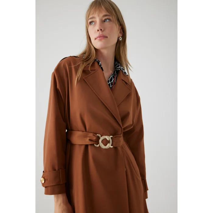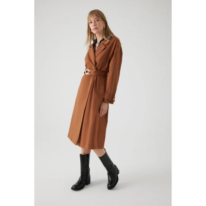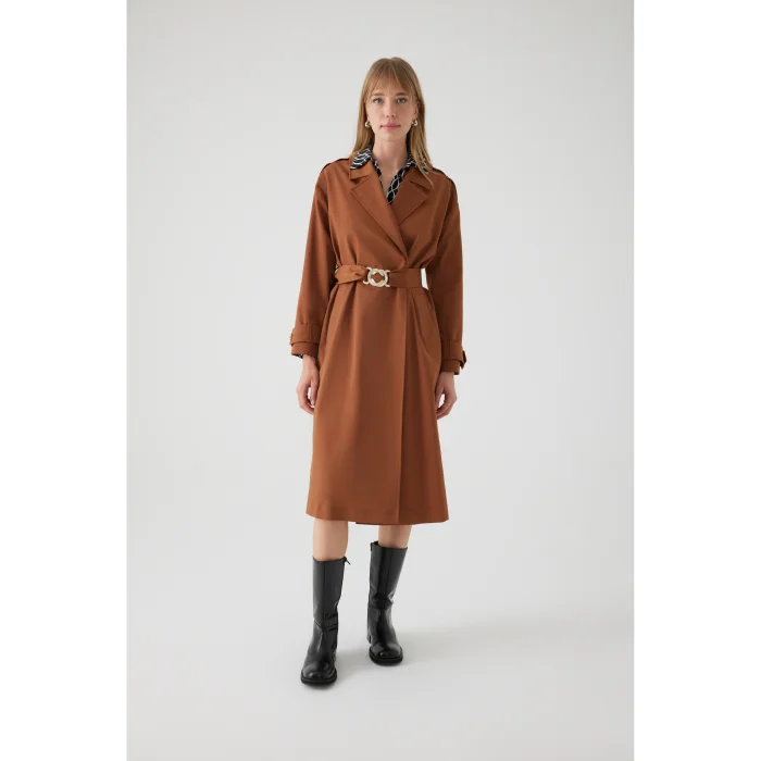 Product: Belted Cotton Pocketed Regular Camel Trench Coat