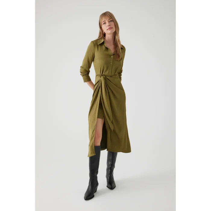 Belted Midi Shirt Dress With Sleeve Detail And Fitted At The Waist