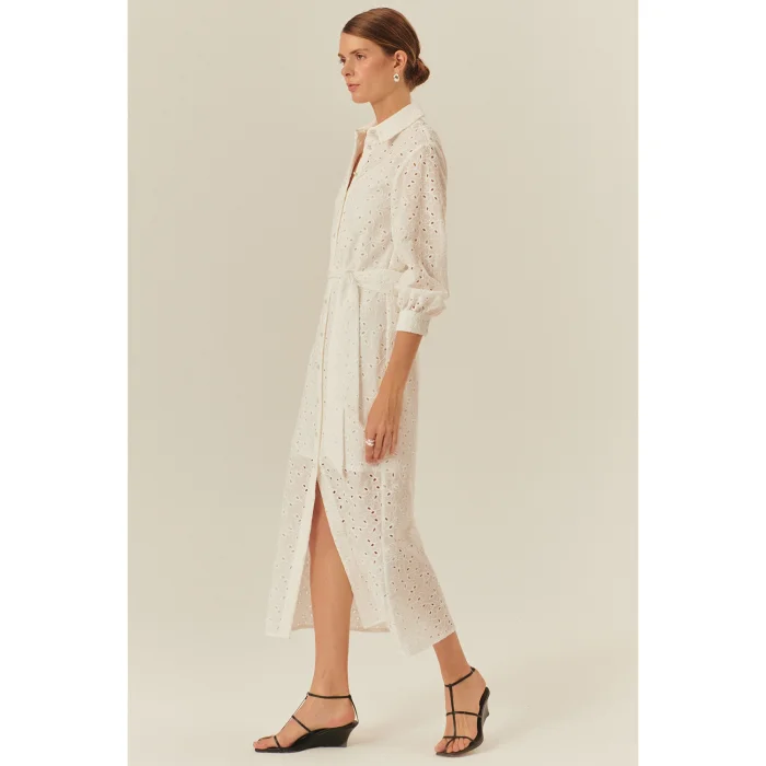 Combining timeless elegance and elegant craftsmanship, the black cotton fisto midi dress adapts to every moment of the day with its modern silhouette. While it offers a comfortable use thanks to its light texture, the delicately crafted fisto details add a touch of sophistication. The classic shirt collar and waist-tie belt design elegantly accentuates the body lines, while the regular cut provides freedom of movement. This dress, which can be adapted to both your daily style and special occasions with its midi length, has a minimal but impressive stance. Reflect the dynamism of the city to your style with this piece designed with the original touch of Exquise!