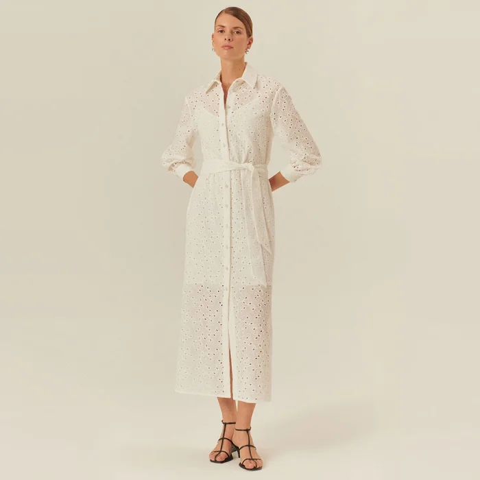 Combining timeless elegance and elegant craftsmanship, the black cotton fisto midi dress adapts to every moment of the day with its modern silhouette. While it offers a comfortable use thanks to its light texture, the delicately crafted fisto details add a touch of sophistication. The classic shirt collar and waist-tie belt design elegantly accentuates the body lines, while the regular cut provides freedom of movement. This dress, which can be adapted to both your daily style and special occasions with its midi length, has a minimal but impressive stance. Reflect the dynamism of the city to your style with this piece designed with the original touch of Exquise!