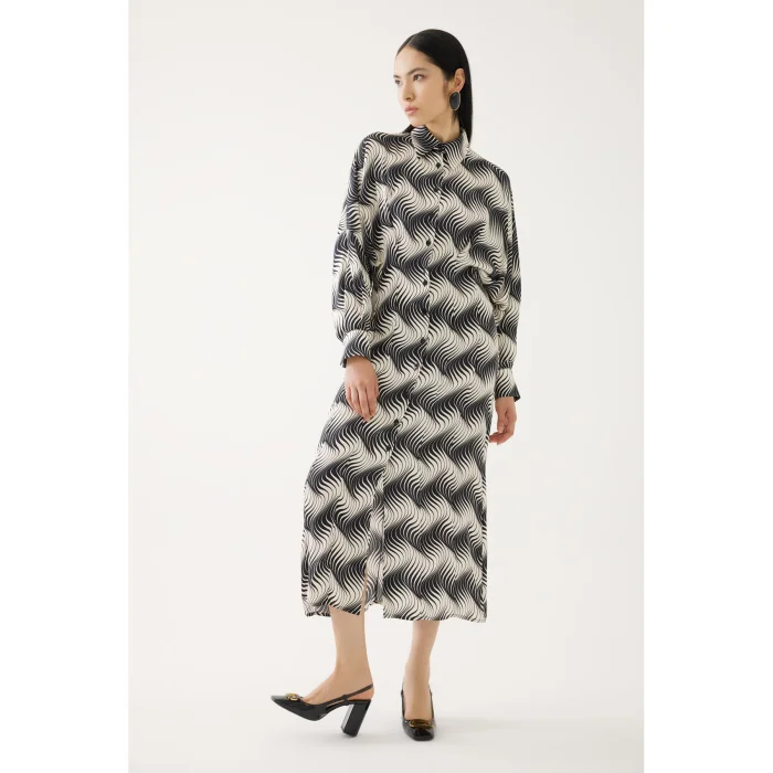 The dress, which consists of black and bone-colored patterns on the classic form, becomes an indispensable part of wardrobes. You can achieve an elegant style with its straight length cut suitable for daily and office concepts. You can combine the dress model, which has a head-to-toe buttoned design with pliers at the waist with pliers and stilettos and stylish sandals.