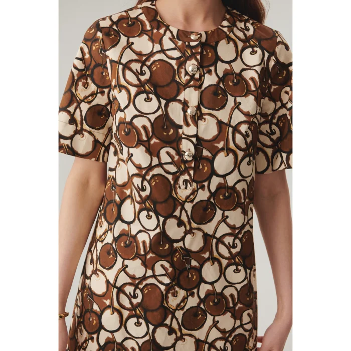 Product: Buttoned Crew Neck Short Sleeve Patterned Mini Dress