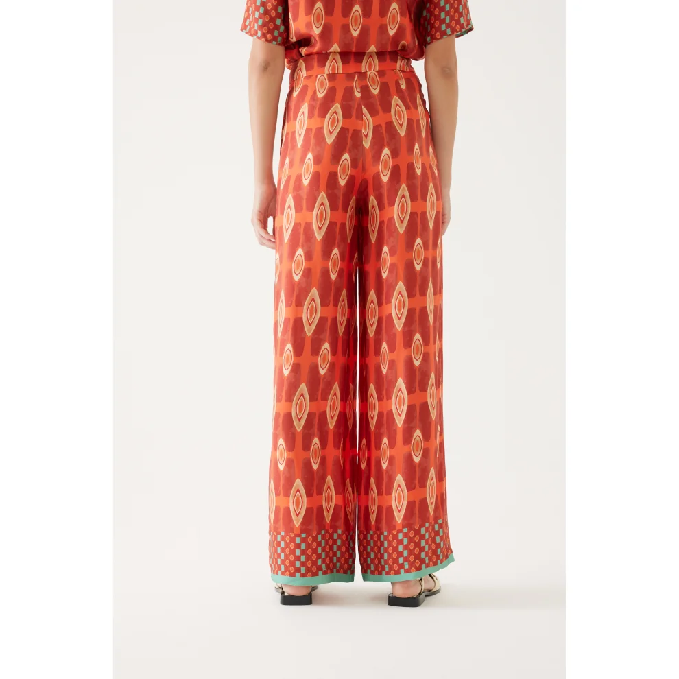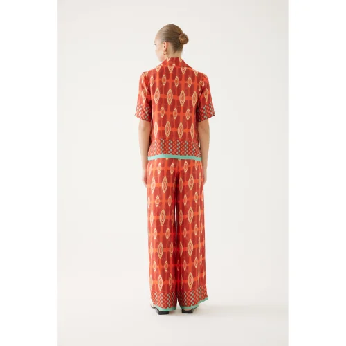 Reflecting the energy and vitality of the summer season, these geometric patterned colored trousers are a piece that will add dynamism to your wardrobe. The geometric pattern, created by the harmony of various colors, adds a visual appeal and a modern atmosphere to the trousers. Thanks to its light and breathable fabric, it can be worn comfortably on hot summer days and highlights your style. Whether you wear them for casual chic or combine them for a more special event, you will always look remarkable and stylish with these pants. Thanks to its flexible structure, it provides freedom of movement and offers a stylish appearance. Express your style with these trousers, which are candidates to be indispensable in your wardrobe, and feel the energy of summer on you.